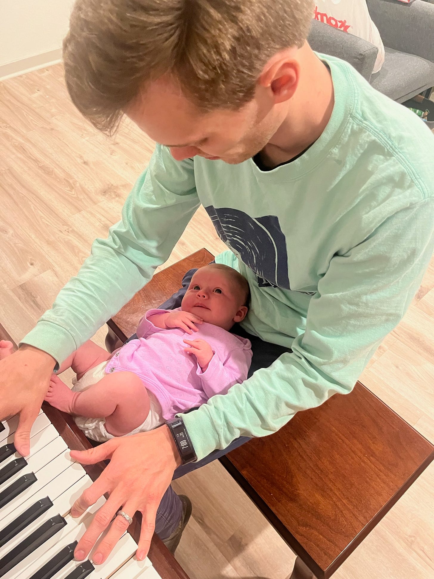 I got a new piano last summer because Silas (my almost 2 year old son) was crawling under the beloved CP-80 and pulling on the legs. The new piano has a soft pedal which is how I have mostly been playing it. I love a soft pedal and sustain. Speaking of children, we also had a daughter born earlier this year, our sweet Dorothy. She is precious. I have a little song for her I am working on too.